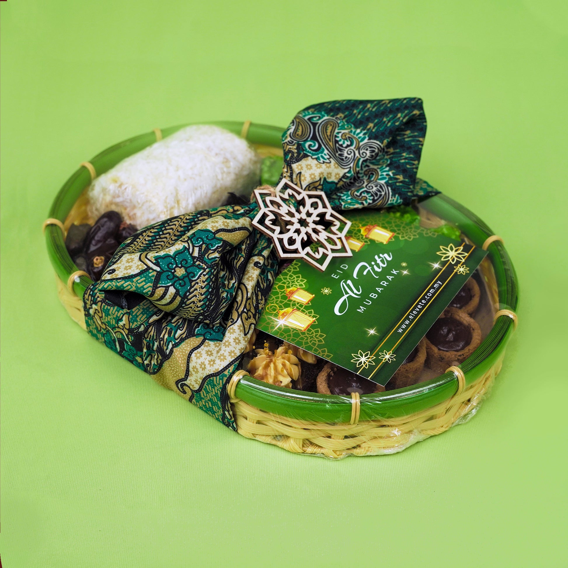 A smaller option of our variety platter that includes a combination of this year's Ramadhan & Raya delicacies. Served on a bamboo tray and gift wrapped with a batik cloth, specially arranged for your gifting needs on this festive occasion.