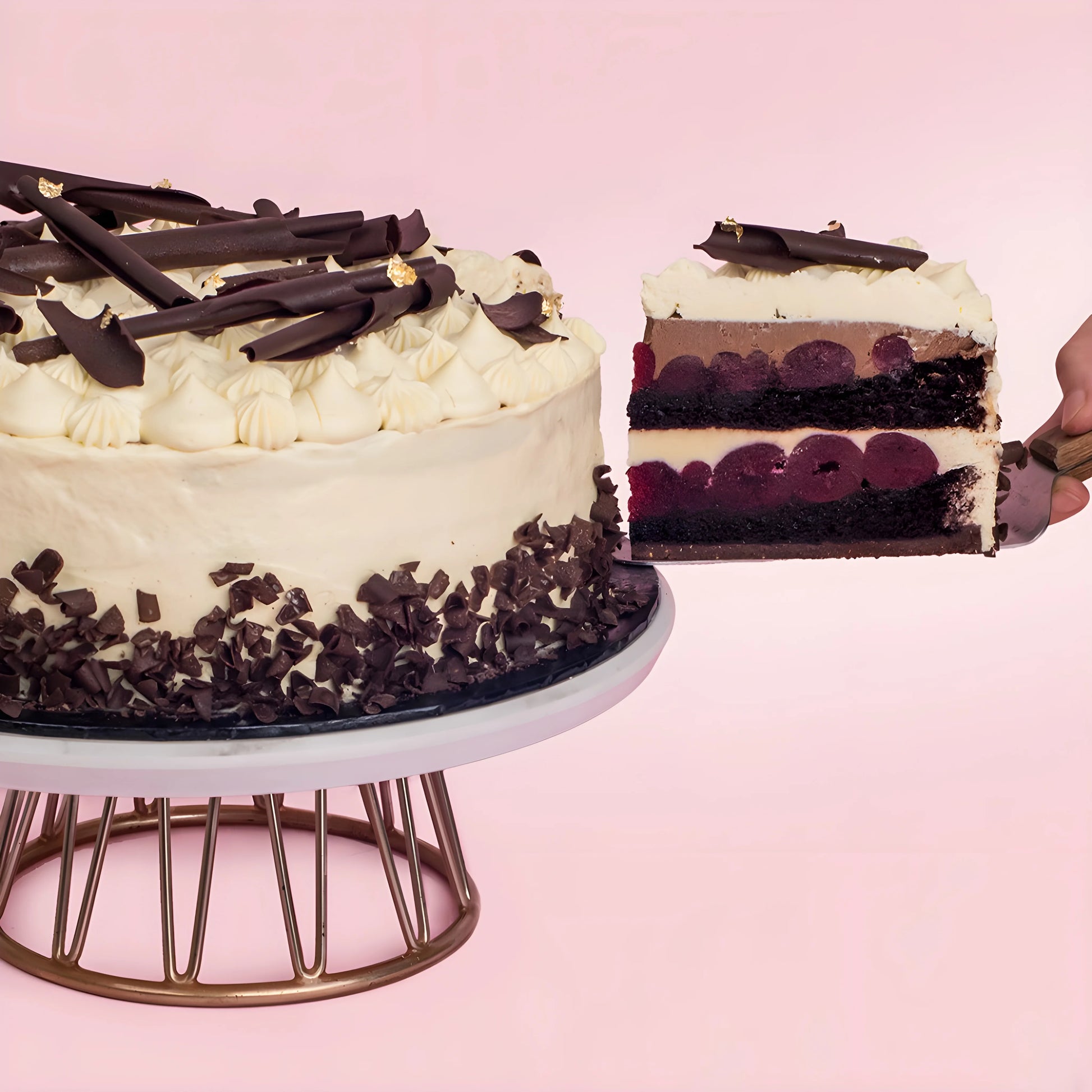 With every bite, everyone around the table, whether young or old, will bound to enjoy its moist chocolatey taste balanced with the tartness of cherries. And to top it all off, we can never forget the classic Chocolate Shavings as a topping, generously sprinkled on this regal cake.