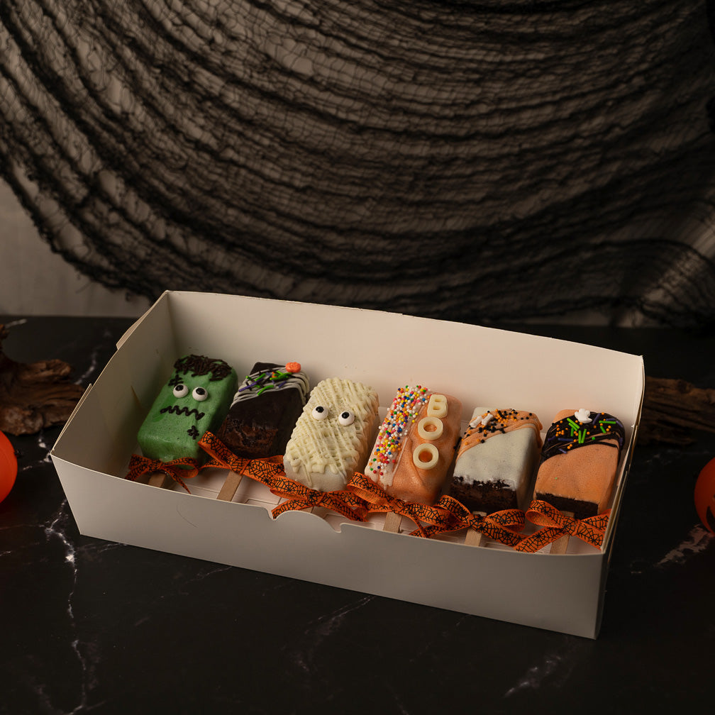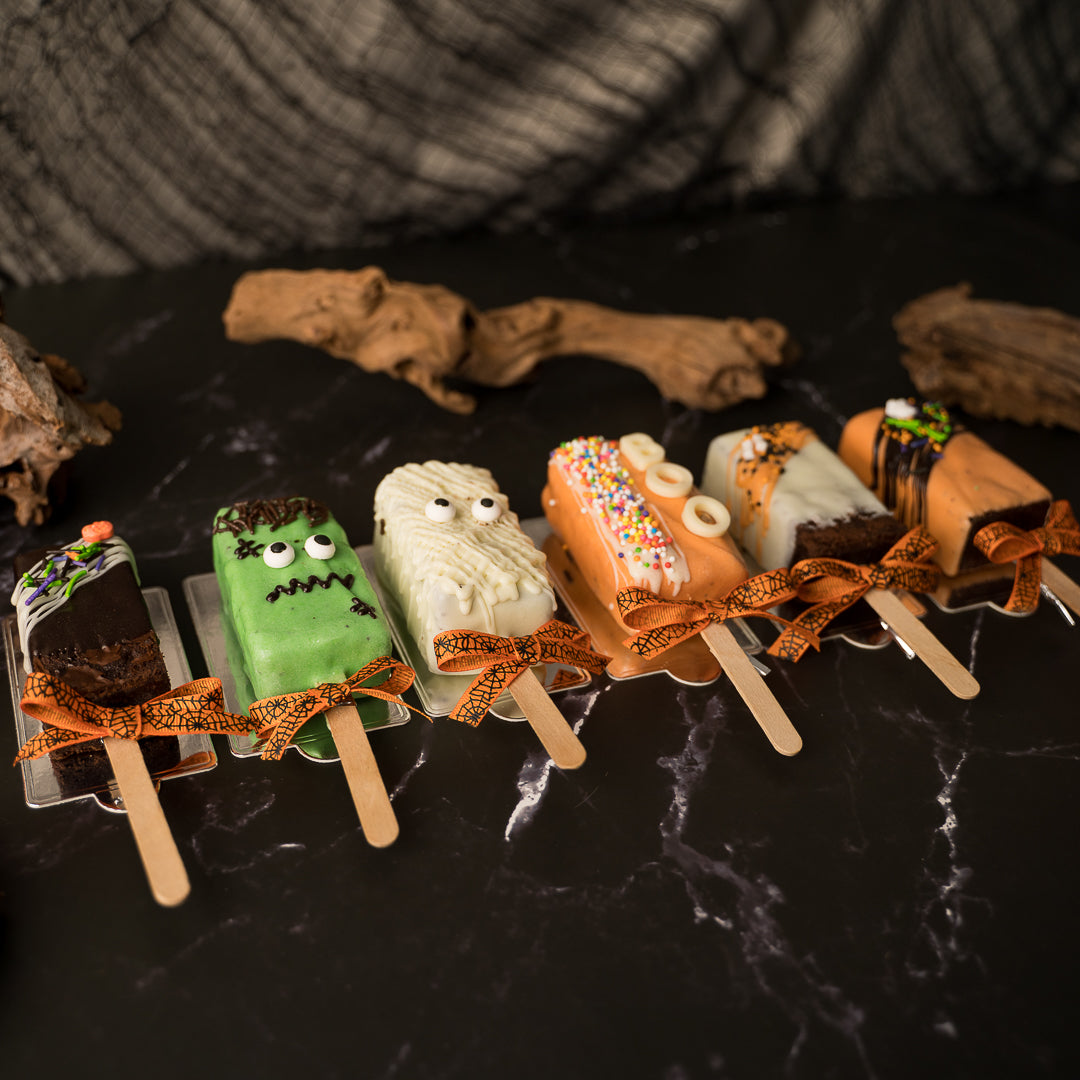 Get ready for a frightfully delicious treat! Our Halloween-themed brownie pops are the perfect combination of fudgy brownies and nutella brownies. Each pop is hand-dipped in chocolate and decorated with halloween sprinkles. These spooky treats are sure to be a hit at any Halloween party or as a sweet surprise for yourself.