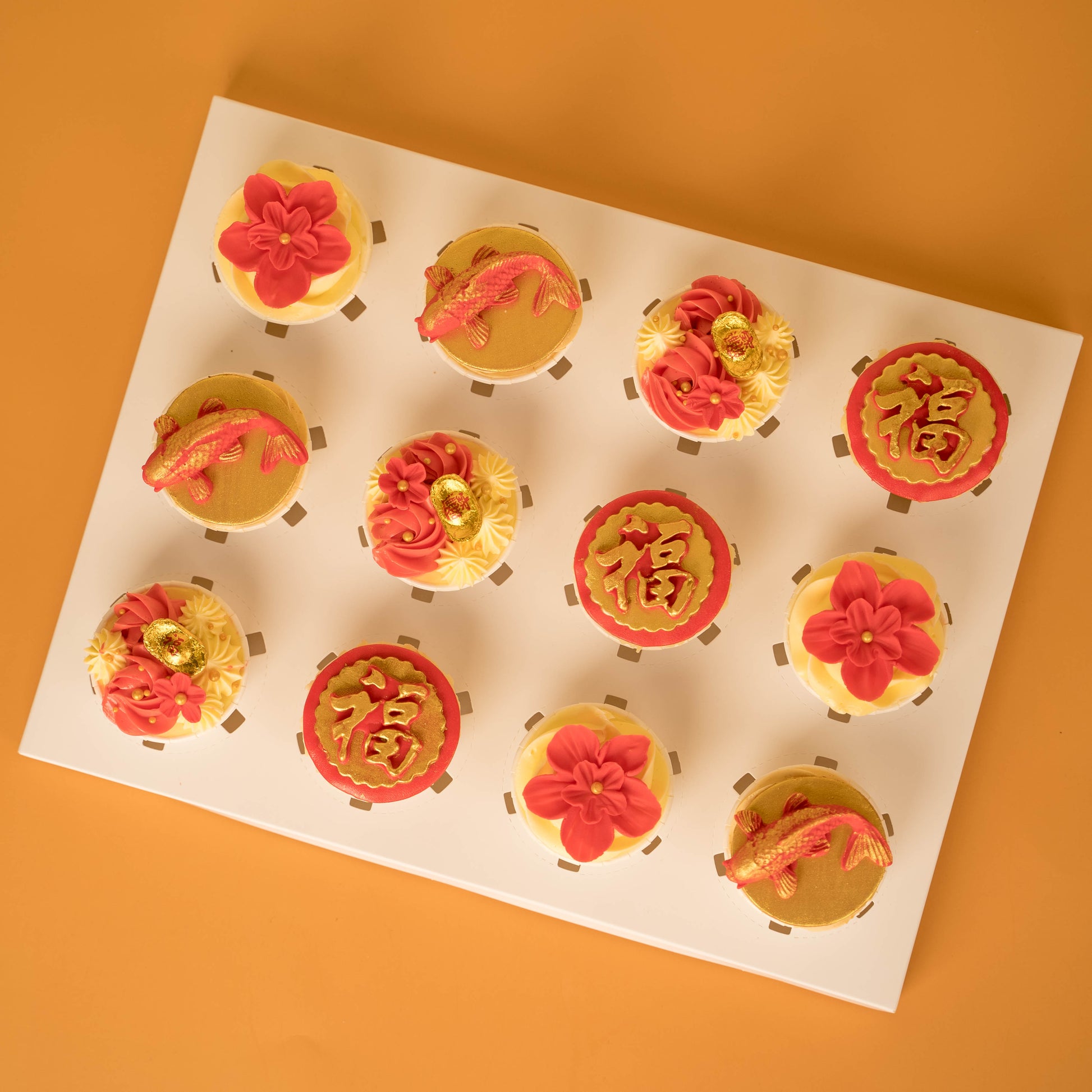 Impress your business associates or loved ones this Chinese New Year with our Bountiful Spring Cupcakes! Featuring a selection of our top-selling flavours, these beautifully decorated treats are sure to please both the palate and the eye. Share in the joy and prosperity of the holiday season with these delectable cupcakes!