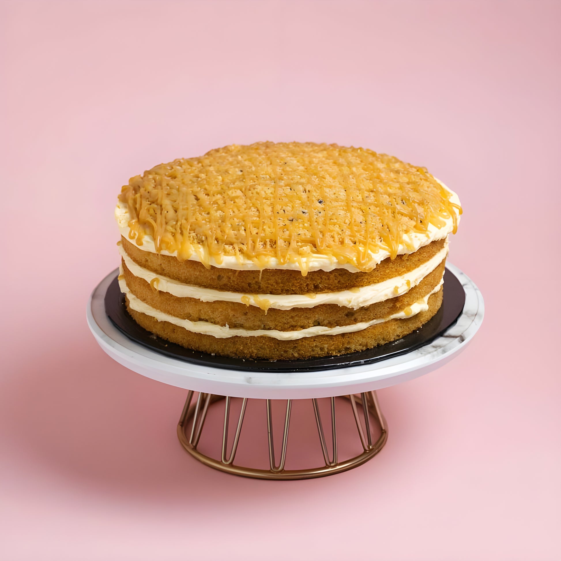 If Chocolate isn't your thing, our Butterscotch Cookies Cake shouldn't be missed! Paying homage to another classic, the moist Vanilla cake is layered and frosted with a rich Vanilla cream cheese frosting. Enjoy every mouthful of that crunchy bite from the homemade chocolate chip cookies crumbles drizzled in our homemade Butterscotch sauce.