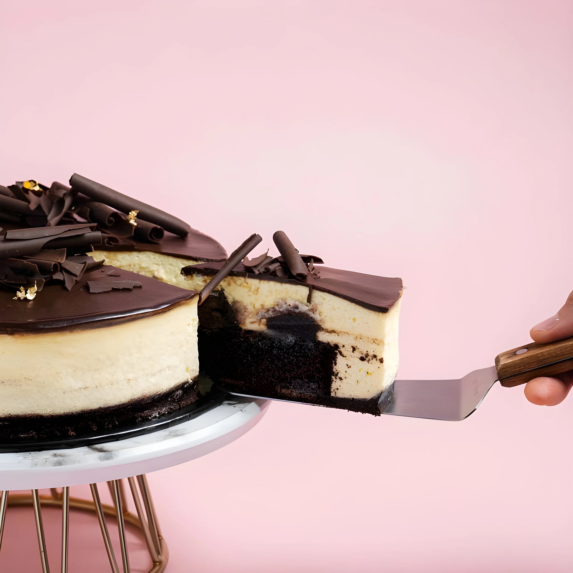 A classy cake like our Chocolate Tuxedo is sure not to be missed. You know it's an occasion to call for when you see a classic moist Chocolate Cake dressed to the nines. Walk down memory lane as your tastebuds enjoy this classic pairing together with a mixture of Cream Cheese Mousse and Chocolate Cream. So delectable, you won't realize you've hit the Chocolate Cookie base on the bottom!
