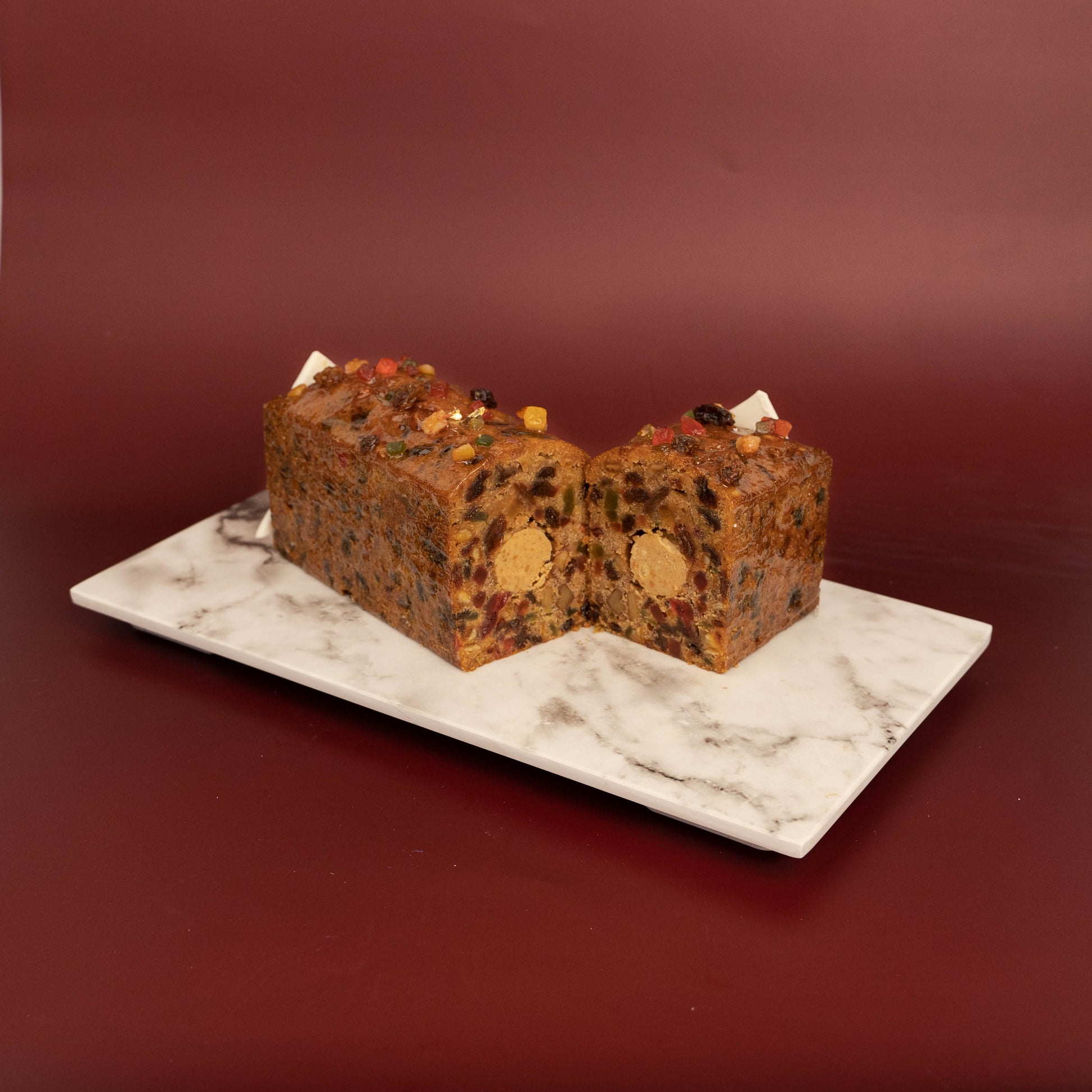 The nostalgic flavours of mixed candied fruits, raisins and walnuts comes with a surprising twist of a Biscoff Ganache center and coated with an apricot glaze. It will no doubt bring on a whole new sensation to the holiday spirit, creating lasting memories to share at gatherings to come.