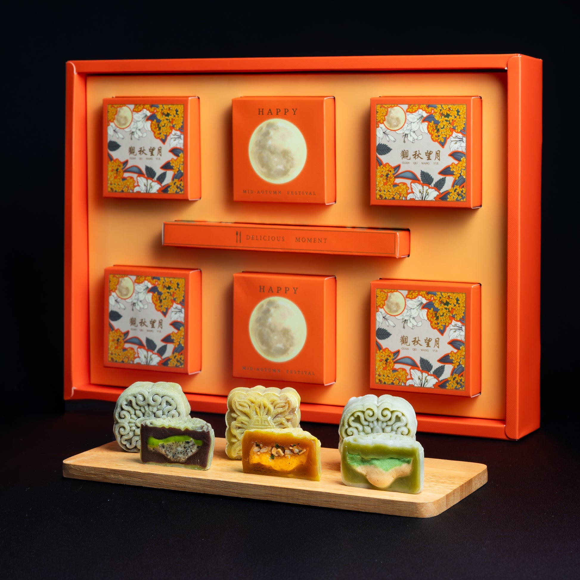 Each luscious snowskin mooncake in this gift set is thoughtfully crafted to balance heritage and innovation, bringing together familiar classics with elevated, contemporary twists that create a harmony of textures and tastes. Featuring 3 premium flavours, each pair handcrafted with the finest ingredients to delight your senses.