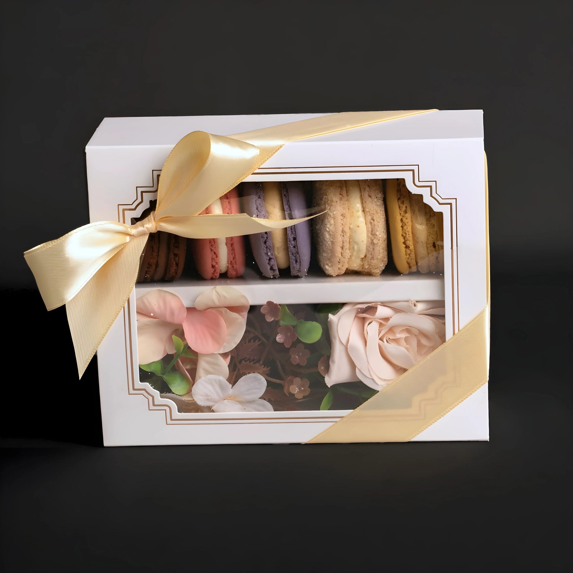 Surprise someone special with our Macaron & Flower Gift Box (5 pieces). It is decorated with artificial flowers with our infamous macarons. Choose your preferred macaron flavours to tantalize any taste bud.