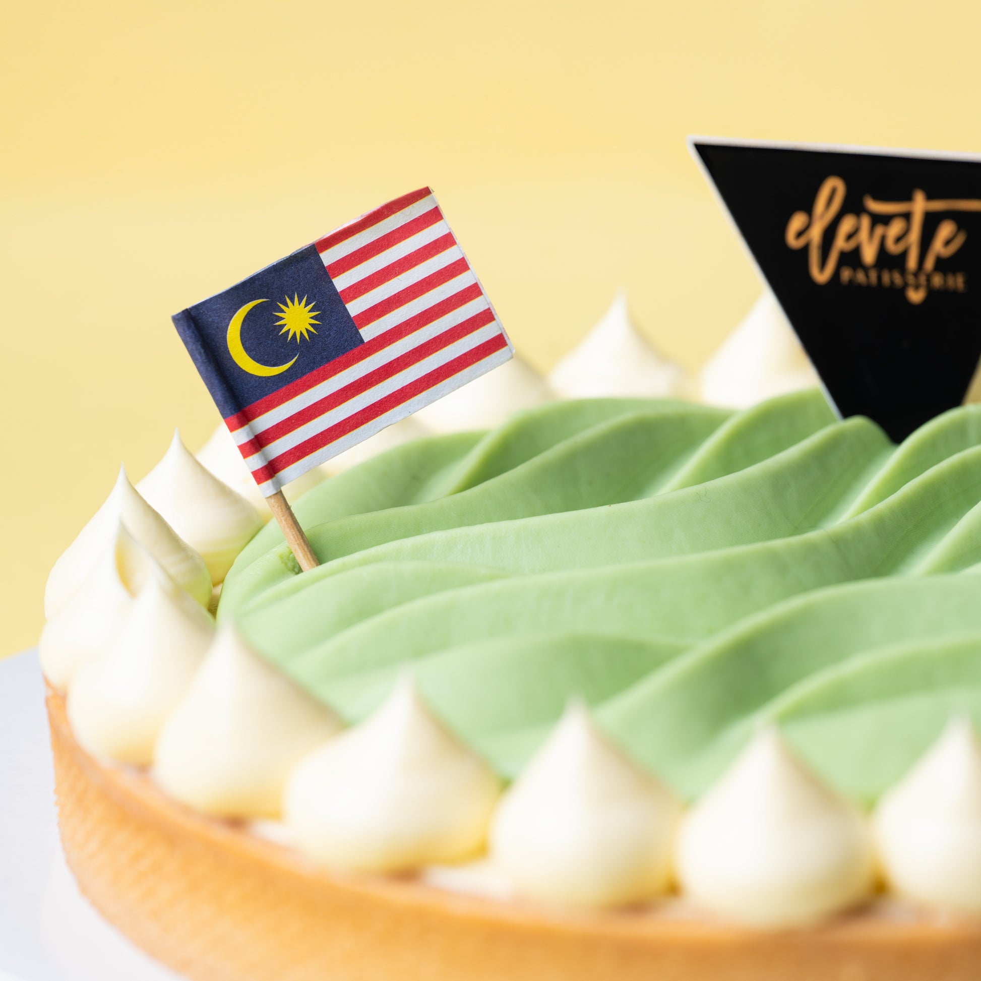 Celebrate Malaysia's independence with a unique twist on tradition, which is our ondeh-ondeh tart! This delightful treat features a rich gula melaka caramel topped with coconut buttercream and pandan curd. Encased in a crisp, toasted almond tart shell and finished with a luscious santan curd, each bite offers a harmonious blend of flavours and textures, perfect for celebrating the spirit of independence with every taste.