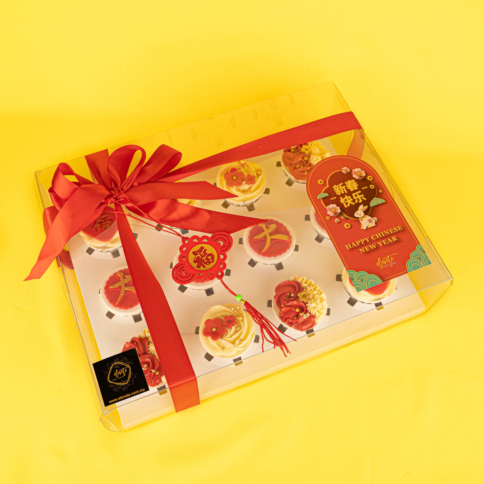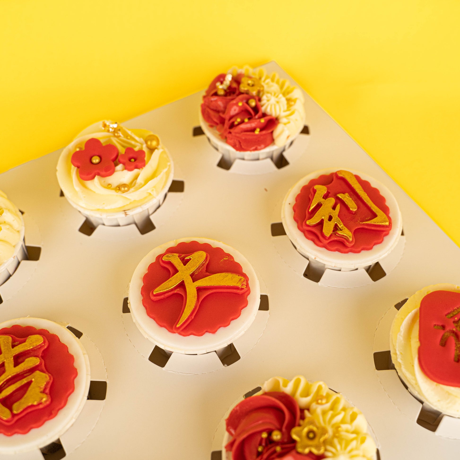 The perfect gift for Chinese New Year, an out-of-ordinary gift that's sure to put a sweet smile to the receiver of these gorgeous dozen cupcakes.
