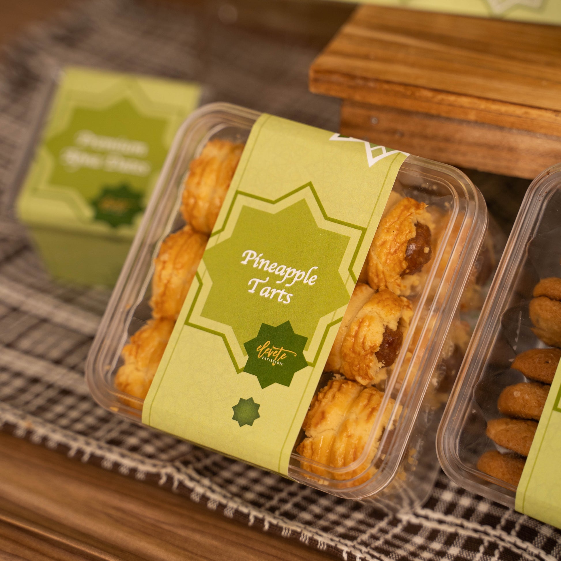 | Ingredients : | Butter, Superfine Wheat Flour, Caster Sugar, Dates, Egg White, Egg Yolk, Fresh Pineapple, Pineapple Tart Filling, Dark Chocolate, Brown Sugar, Sunflower Oil, Cake Flour, Coconut Milk, Full Cream Milk Powder, Palm Sugar, Whole Egg, Pandan Juice, Corn Starch, Whipping Cream, Vanilla, Water, Egg White Powder, Horlicks Powder, Baking Powder, Coconut, White Chocolate, Salt, Baking Soda, Citric Acid, Cinnamon Powder, Star Anise, Cloves |