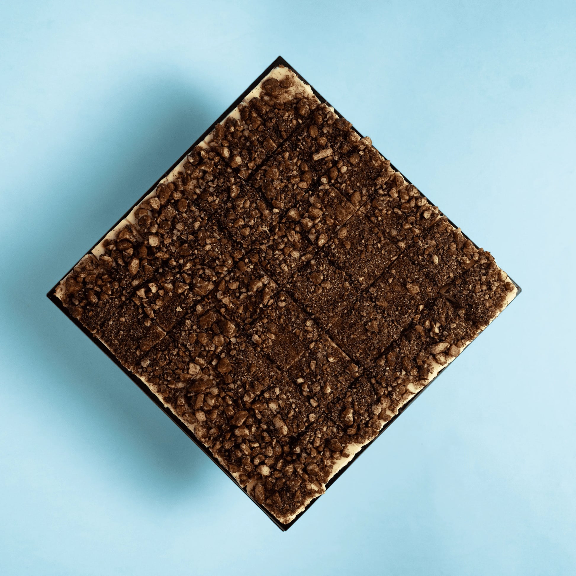 Featuring an aromatic coffee-soaked coconut sponge base (gluten-free) layered on top with a luscious spread of velvety smooth mascarpone cheese. Each bite is a harmonious blend of flavours and textures, complemented by cocoa almond praline toppings that adds a hint of bittersweet elegance.