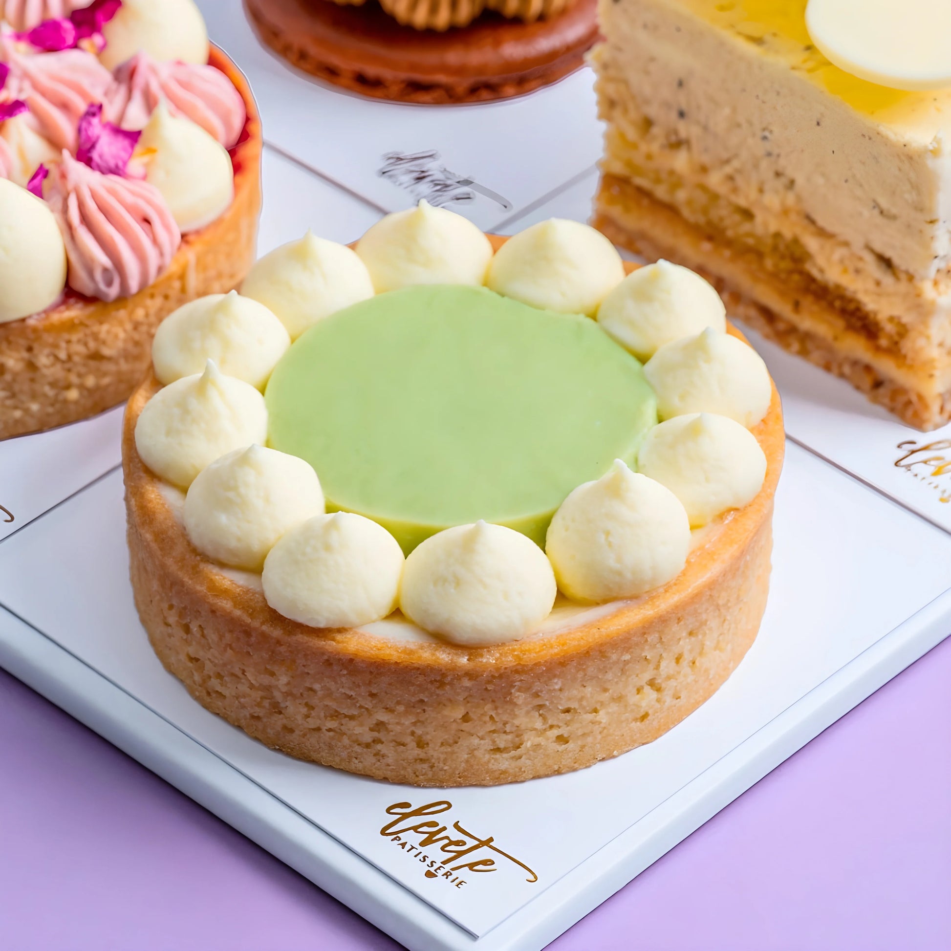🟢 Ondeh Ondeh Tart – A nostalgic nod to tradition, featuring fragrant pandan coconut cream and a gula Melaka centre, inspired by the beloved kuih, reimagined in tart form.