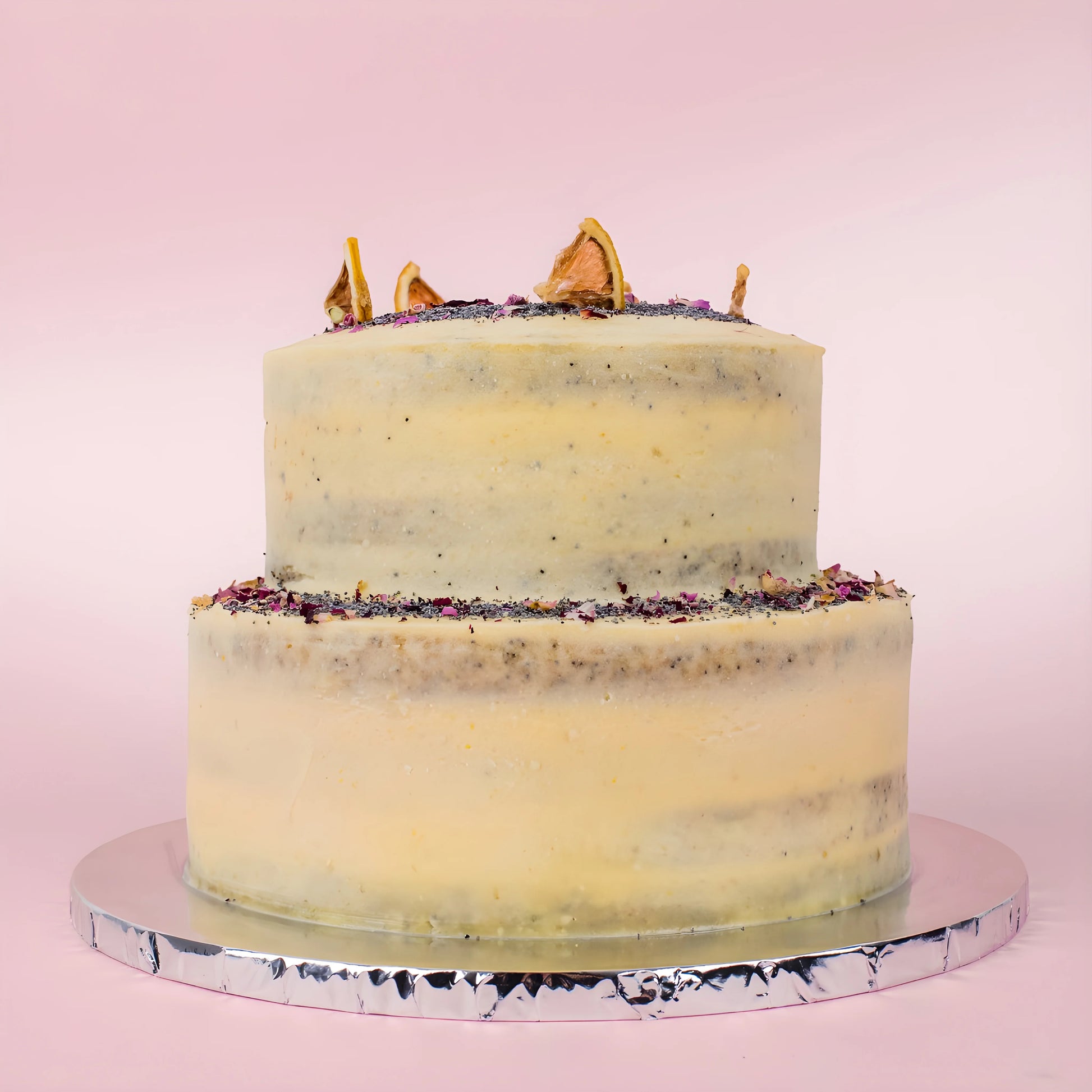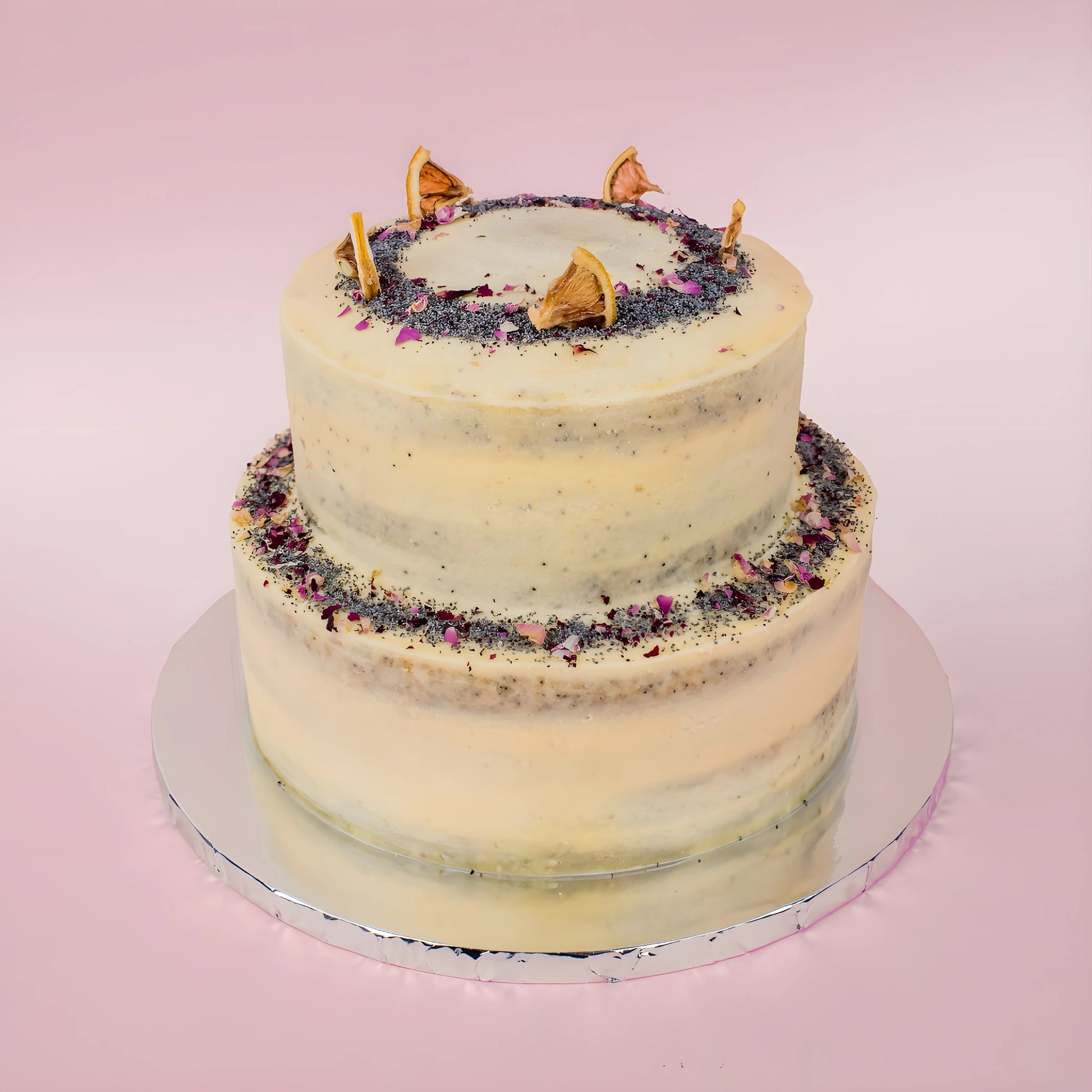 Add some zest into your day with this citrus based Lemon Poppyseed 2-Tier Cake (4kg) enveloping a generous amount of poppyseed and covered with lemon cream cheese frosting. Cake is assembled 9-inch base tier and 7-inch for top tier.