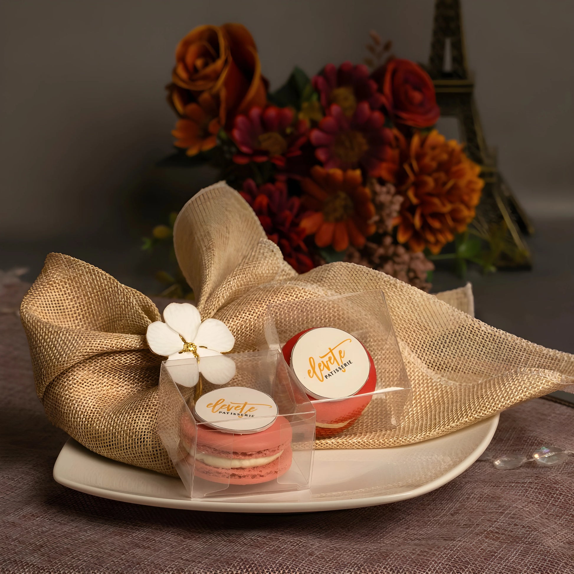Experience the art of personalization with our macarons imprinted with your logo or custom design using edible print to elevete your event or surprise someone special with our custom printed macarons!