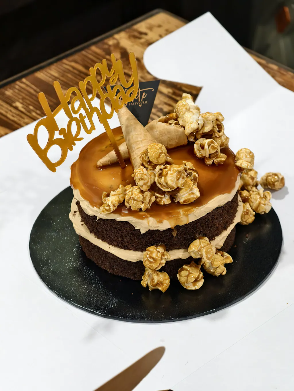 A mini version of our signature Salted Caramel Chocolate Cake with Popcorns. Perfect just-because gift letting people near and dear to you know you're thinking of them. Also a great portion for an intimate birthday celebration.
