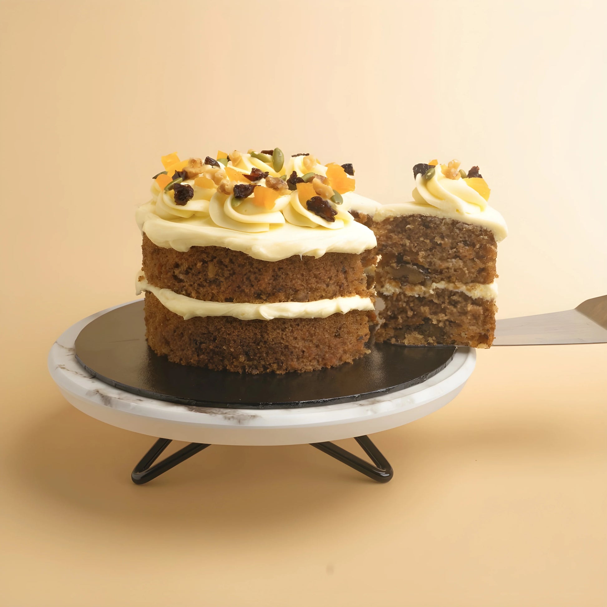 | Ingredients : | Carrot, Caster Sugar, Sunflower Oil, Whole Egg, Cake Flour, Sourdough, Walnut, Cream Cheese, Cinnamon Powder, Baking Powder, Baking Soda, Vanilla, Icing Sugar, Butter, Salt, Nutmeg |