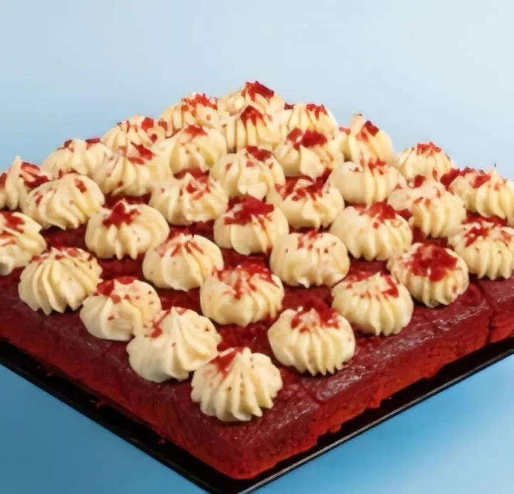 Our Raspberry Red Velvet also comes in squarish cake bites too for your celebrations & gatherings!